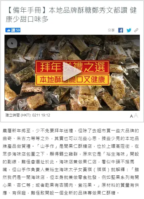山手作獲各大傳媒推薦,被推舉為最火紅送禮新選之一。自品牌開設以來,客人好評不絕,更不乏城中名人點名大讚,成為新一代香港自家品牌新貴!